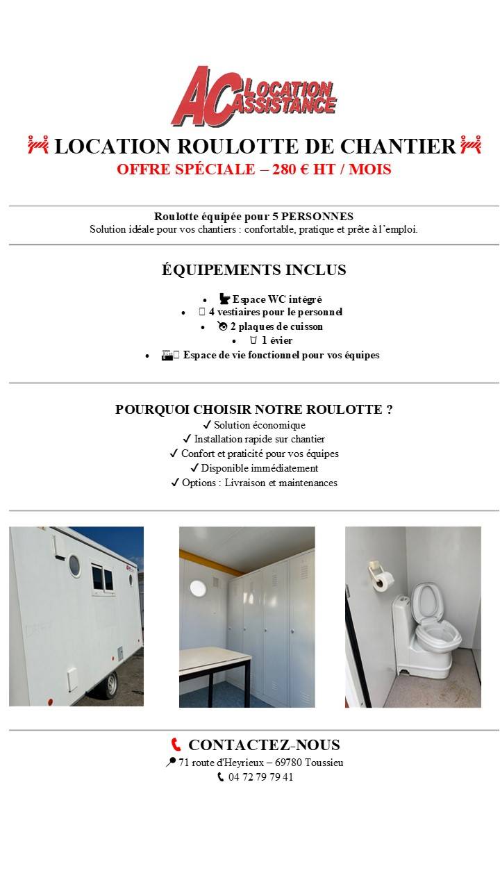 Profitez d’une offre exceptionnelle valable jusqu’au 31 mai 2026 inclus pour la location d’une roulotte de chantier à prix réduit.
